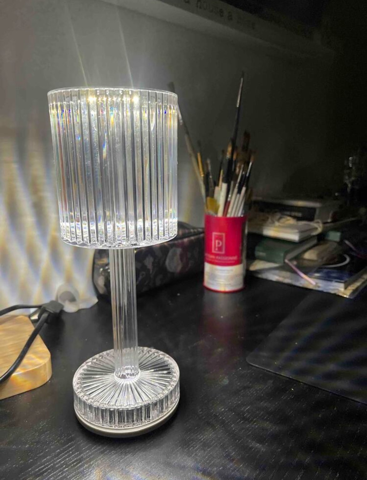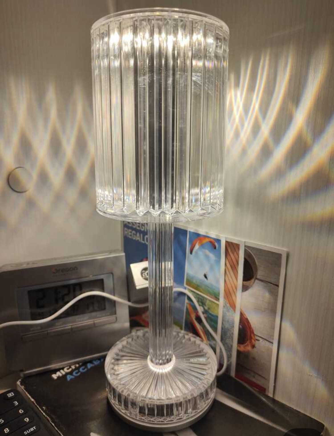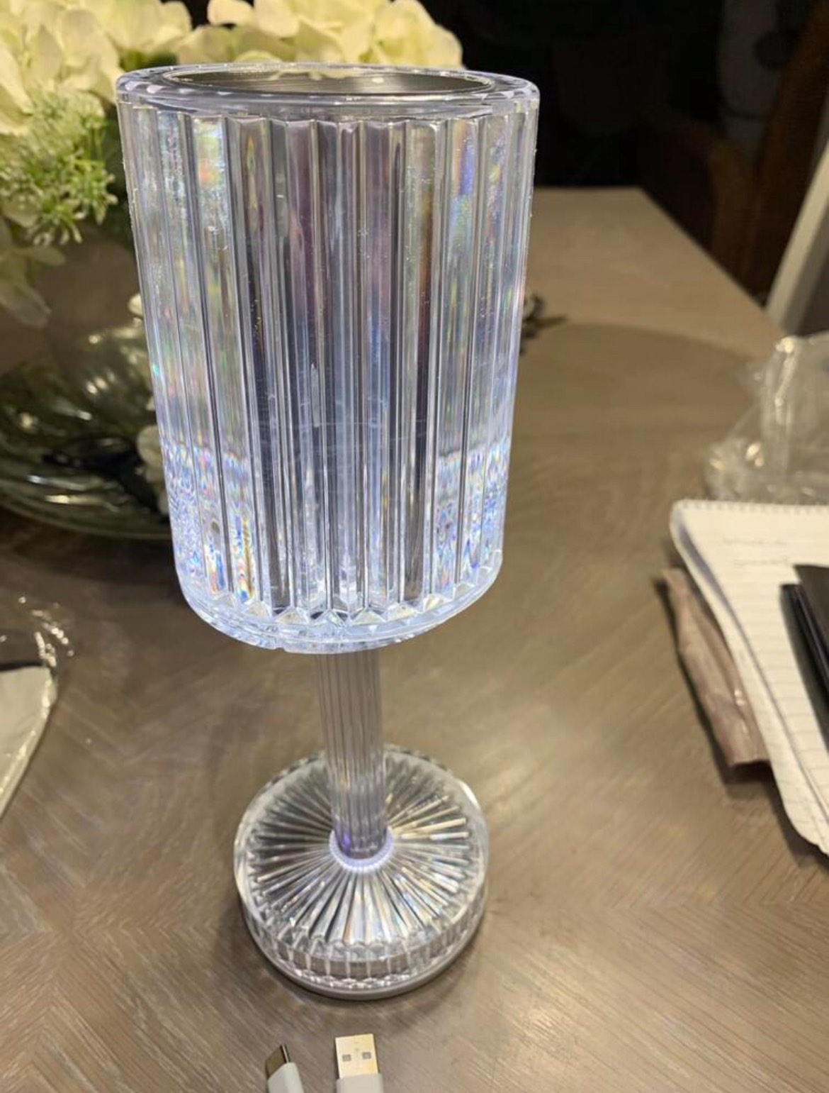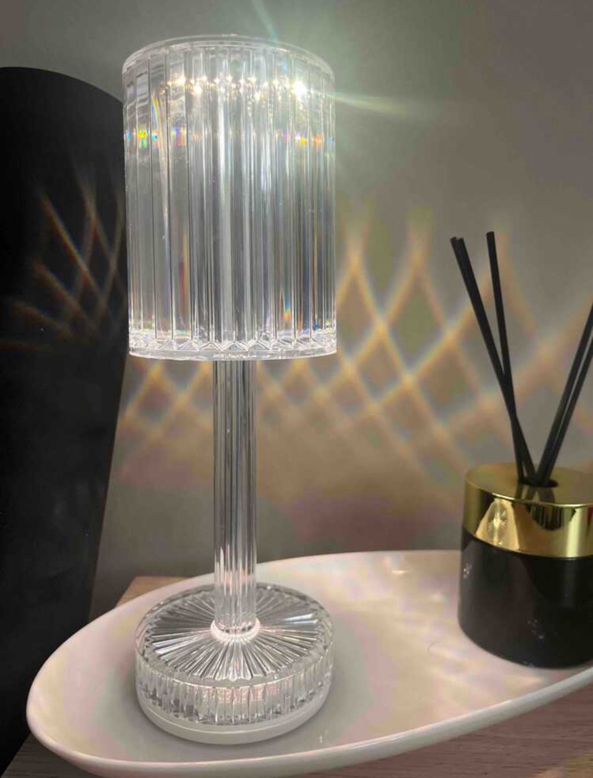 LED кристална настолна лампа със семпъл дизайн и 3D ефект на диамант се вписва чудесно към всеки интериор и създава уют в дома ви.