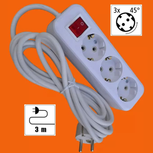 3 м. разклонител 3 гнезда и прекъсвач - бял