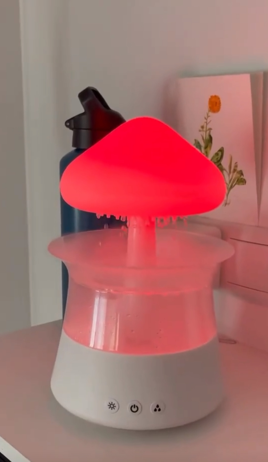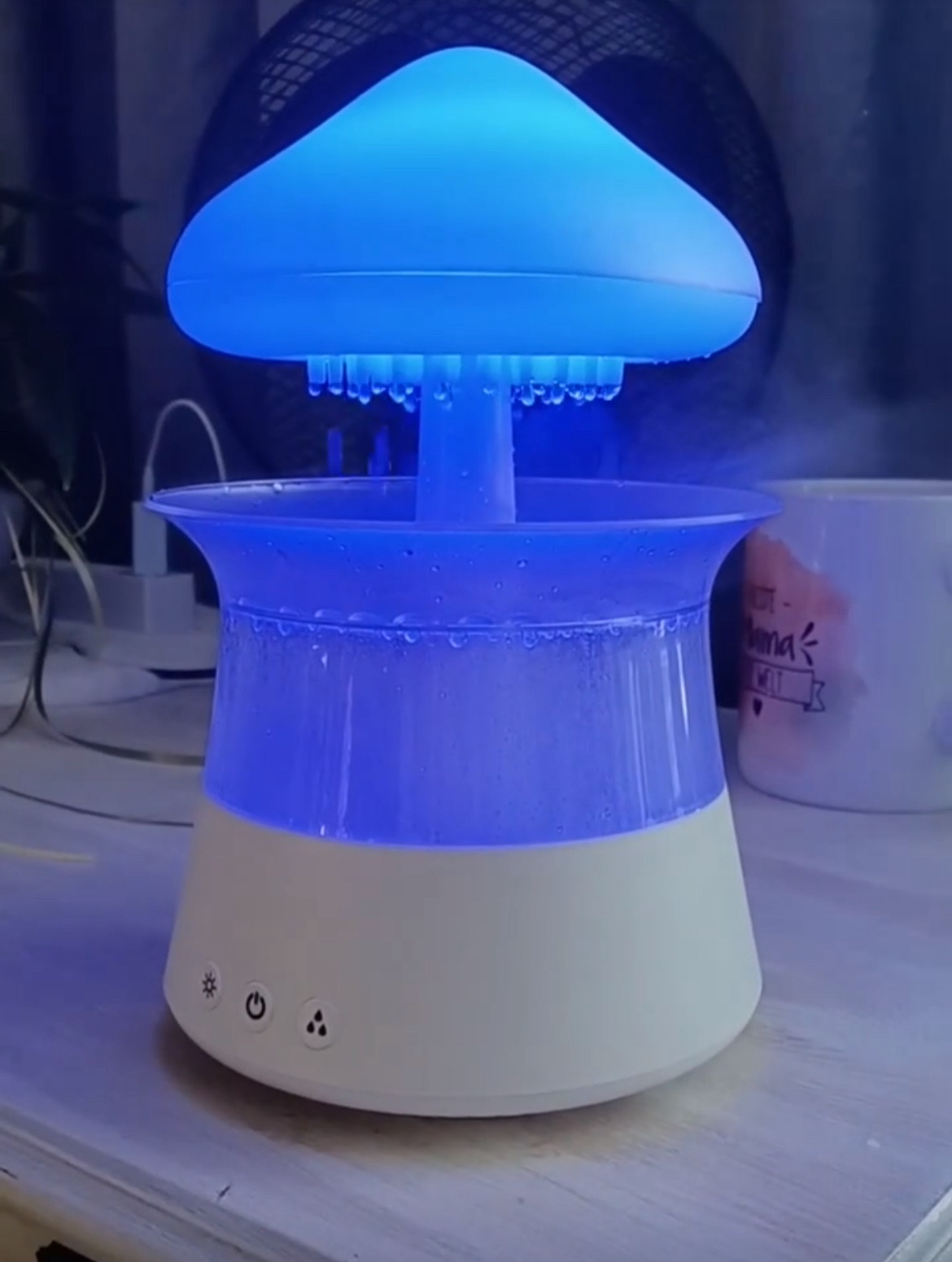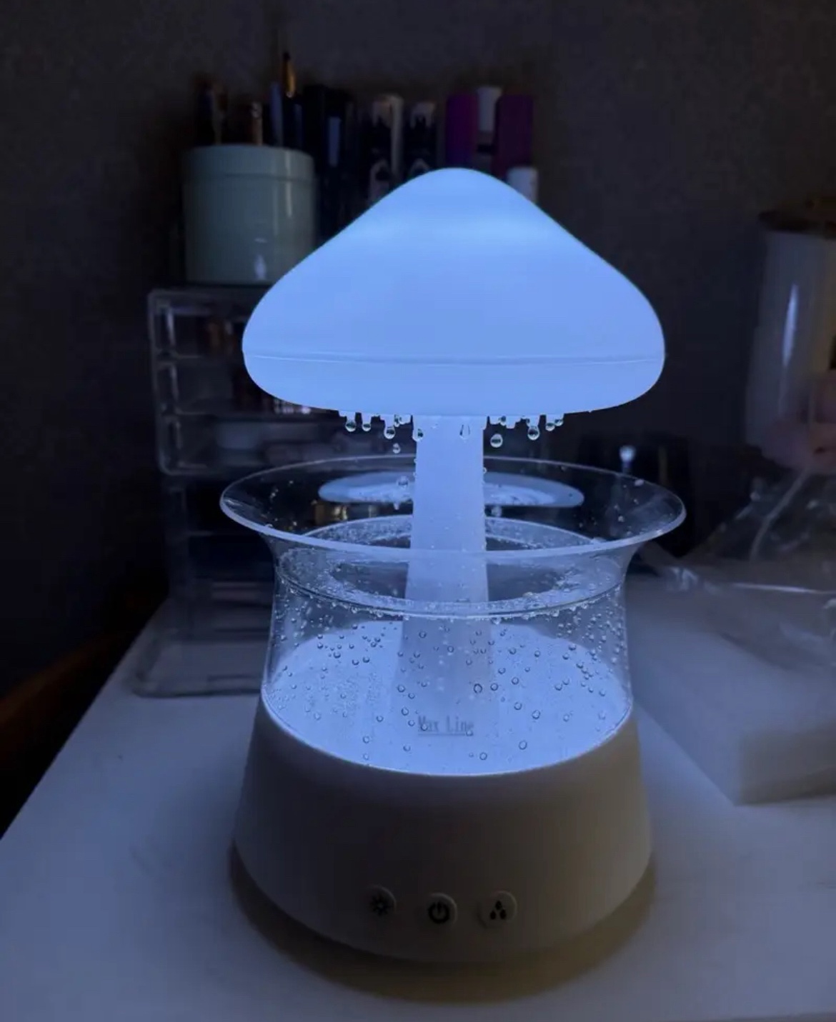 Дифузерът разпръсква любимите ви аромати на етерични масла, създавайки успокояваща атмосфера във всяко помещение. Лампата създава меко и приятно осветление, идеално за нощно време или за създаване на уютна атмосфера. Вградената функция на дъждовен облак симулира звука на капеща вода, което допринася за допълнителна релаксация и спокойствие. Уредът служи и като овлажнител, подобрявайки качеството на въздуха и спомагайки за по-добър сън и комфорт. Елегантният дизайн прави дифузера подходящ за всяко бюро или нощно шкафче, добавяйки естетика и функционалност. Релаксиращите звуци на капеща вода създават успокояваща и медитативна атмосфера, която помага за намаляване на стреса и напрежението. Интензитетът на дъжда може да бъде регулиран в 3 степени. Дифузерът предлага 7 различни цвята на осветяване.