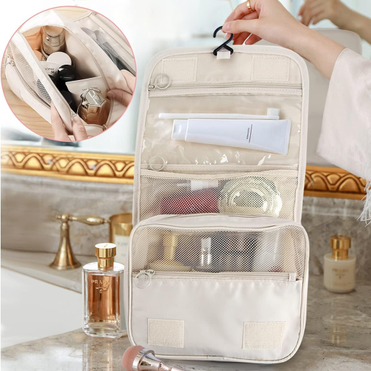 Този висящ козметичен несесер е идеален за пътувания и използване по време на движение и ви осигурява лесно организиране и достъп до вашите тоалетни принадлежности.