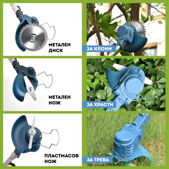 Акумулаторните модели са леки, мобилни и удобни за ежедневна употреба без шум и кабели, подходящи за малки и средни дворове.
