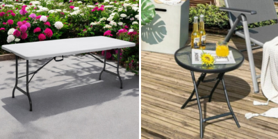 Сгъваемите маси са практично решение за малки пространства или за сезонна употреба. Те са леки, компактни и могат лесно да се пренасят и съхраняват.