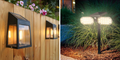 Соларните лампи се предлагат в различни стилове: колчета за забиване в земята, декоративни светлини, лампи с ефект „пламък“, лампи тип фенер или сфера. Те осигуряват мека, приятна светлина и не натоварват сметките за ток. Освен това са лесни за преместване и могат да се използват сезонно или целогодишно според нуждите.