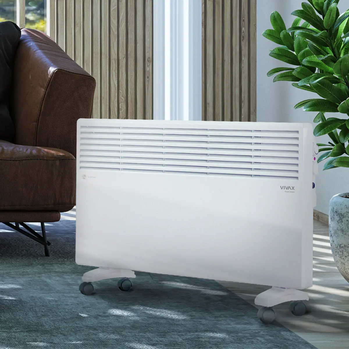 Електрически конвектор с цифров контрол и дистанционно управление, регулируем термостат, 2000 W, Бял