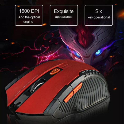 Ергономична Безжична USB оптична 6D мишка с регулируем DPI, Спящ режим - Червено/Черно