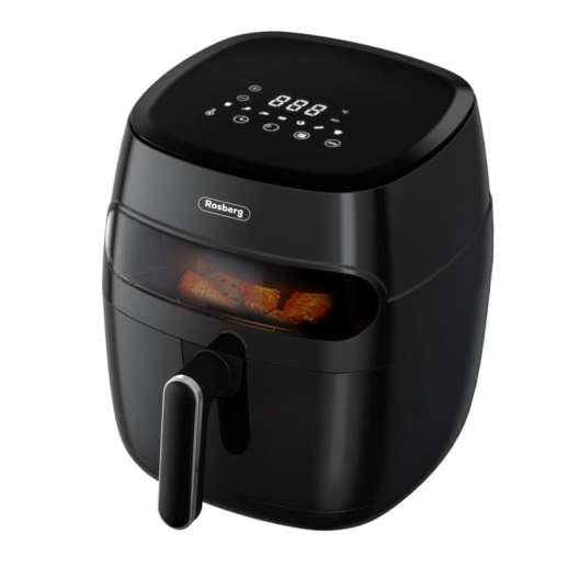Фритюрник Air Fryer Rosberg R51980CA, 1350W, 5.2 л, LED дисплей, Горещ въздух, Таймер, До 200°C, Черен
