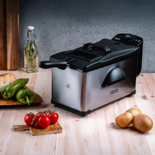 Фритюрник Oliver Voltz OV51980P, 2000W, 3 литра, Напълно разглобяем, Инокс/Черен