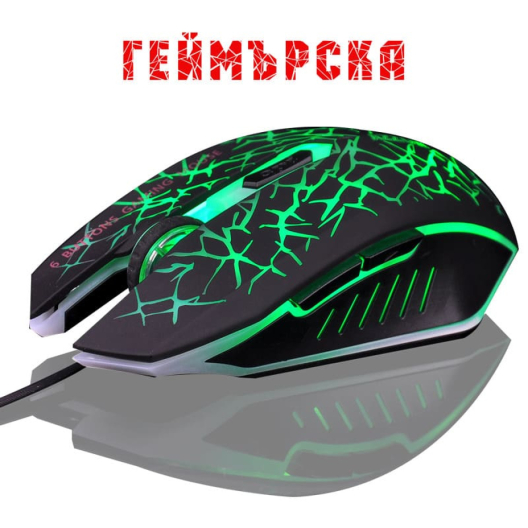 Геймърска Жична USB 6D мишка 3600 DPI, 7 променящи се цвята LED подсветка