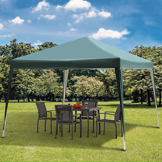 просторна, със страни от 3 метра и височина от 2 метра (2,55 м в центъра). Нейният квадратен сенник ще Ви предпази 90% от UV