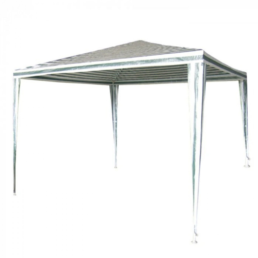 Градинска шатра с размери 2.4 х 2.4 м в свеж принт на райе в бяло и зелено. Перфектното допълнение за градината или зоната около басейна - за да се наслаждавате по-дълго на топлото време заедно с близките си хора. Доброто съотношение цена / качество я прави достъпна за всяко домакинство.