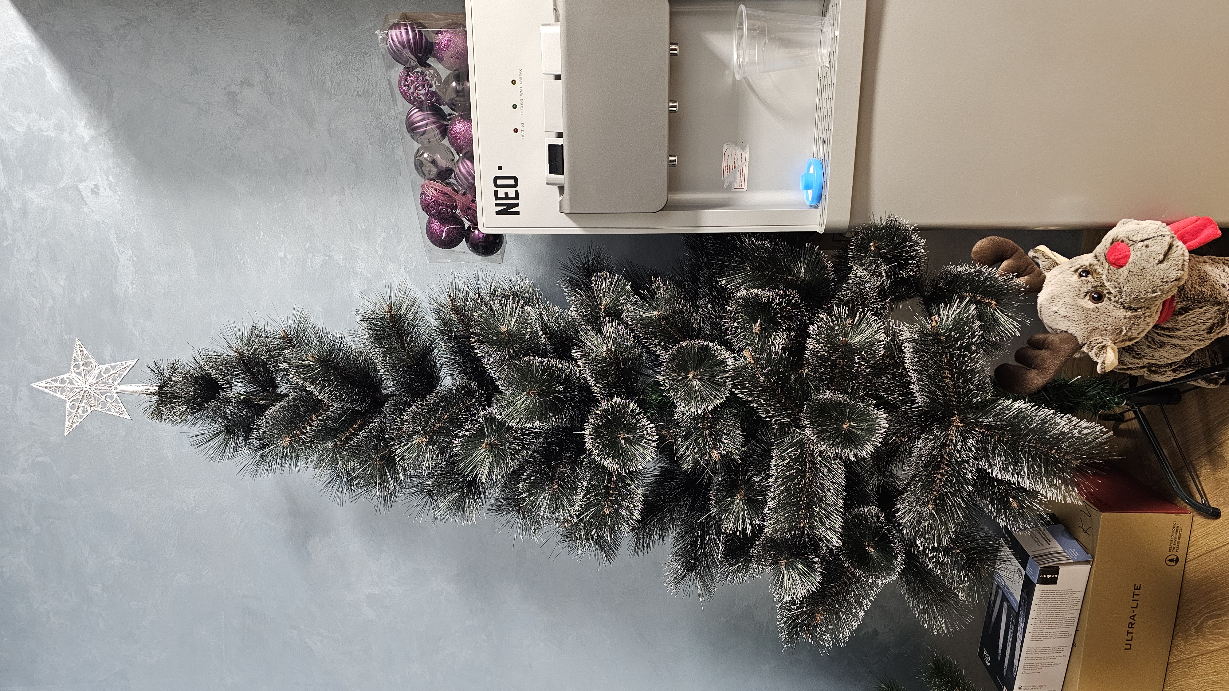 Това красиво коледно дърво, изработено от PVC материал, е много реалистично по форма и външен вид. То има изключително плътни клони, които правят елхата още по-реалистична. Всички клони могат да бъдат оформяни, което ви позволява да придадете перфектна форма на дървото. Включената метална стойка му осигурява оптимална стабилност.