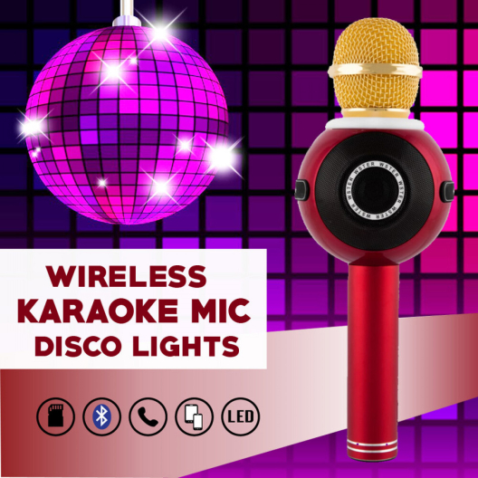 Микрофонът е снабден с LED светлини,които ще озарят всяко парти.