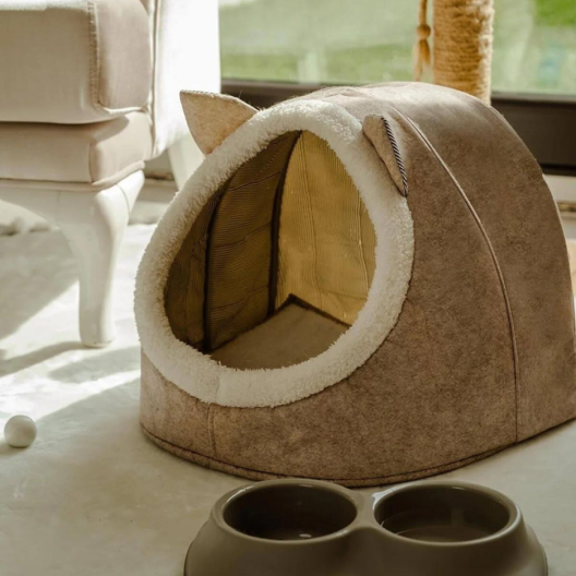 Къщичката разполага с мека възглавничка и просторно вътрешно пространство осигуряващо на вашата котка или куче уютно място, където да се чувства като у дома. Идеално е за почивка, сън или игра.