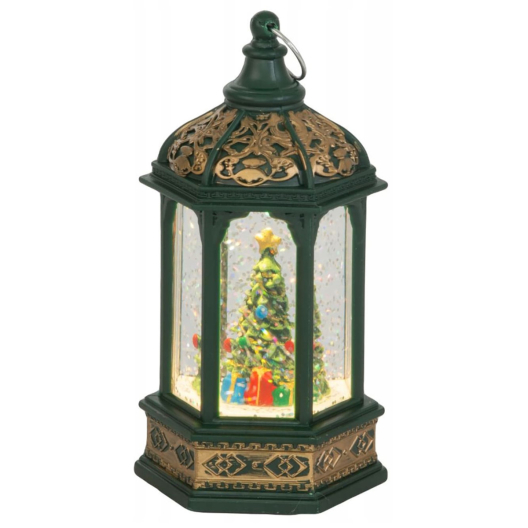 - Форма на класически фенер - в него има красиво украсена коледна елха, деликатно осветена от LED светлини