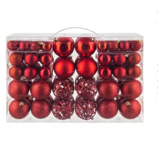 Съдържащ 100 бр. топки, комплектът е достатъчен за украса на голяма елха или за разпределение в различни зони на дома. Топките са устойчиви на счупване, изработени от висококачествени материали, които гарантират безопасност и дълготрайност, което ги прави подходящи за домове с деца и домашни любимци.