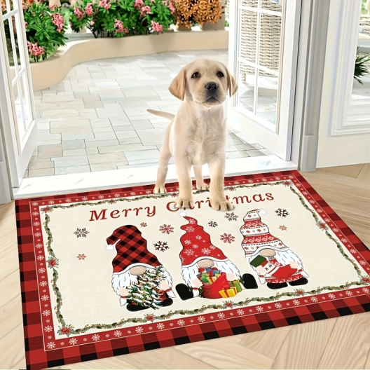 Открийте магията на празничния сезон с нашето очарователно коледно килимче, което ще донесе топлина и уют във вашия дом. Придава весело настроение благодарение на трите симпатични джуджета, готови да отпразнуват Коледа с вас. На килимчето е изобразен и коледен надпис в класически червен цвят, обграден с елегантен червен кант, който придава допълнителен празничен акцент. Изработено от висококачествени материали, това килимче е меко на допир и издръжливо, подходящо за поставяне в хола, пред входната врата или в детската стая. Добавете го към вашата празнична декорация и създайте вълшебна атмосфера за вас и вашите близки.