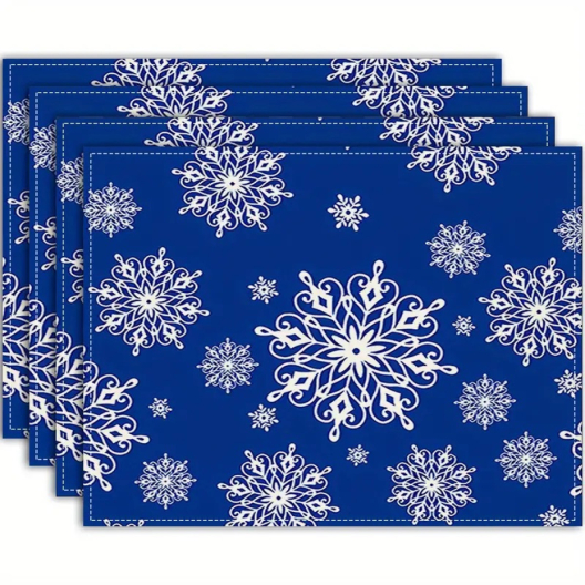 Комплект 4 броя сини подложки за маса - Големи снежинки, 30x45 см.