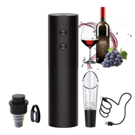 Комплектът електрически тирбушон за бутилка вино с аксесоари е съвършеното допълнение за любителите на виното. Съчетавайки елегантност, удобство и функционалност, той превръща всяко отваряне на бутилка вино в изискан ритуал. Просто поставете електрическата отварачка върху бутилката, натиснете бутона и наблюдавайте как тирбушонът плавно и без усилия освобождава корка. Това го прави идеалният избор за романтична вечеря, празник или обикновена наслада от любимата реколта.