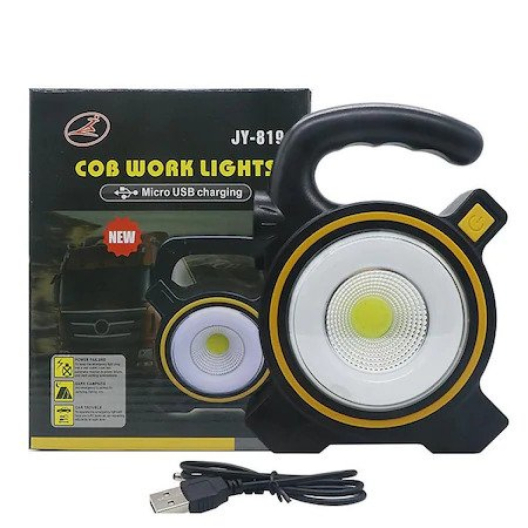 LED COB соларен прожектор с два режима работа и удобна дръжка за пренасяне.