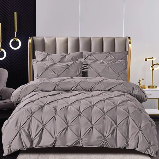 Спалното бельо впечатлява с луксозни, равномерно разпределени, леко повдигнати плисета.Те се състоят от повдигнати звездовидни плисета във формата на Х, които се повтарят по цялата горна част на спалното бельо, образувайки диамантен модел.