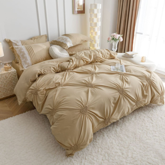 Луксозен спален комплект с бродерия от 6 части – Бежов