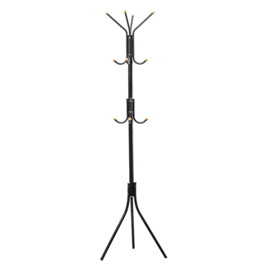 Тази свободностояща закачалка се предлага не само с 1, а с цели 3 нива по 4 куки, подходящи за палта, шапки, чанти и много други.