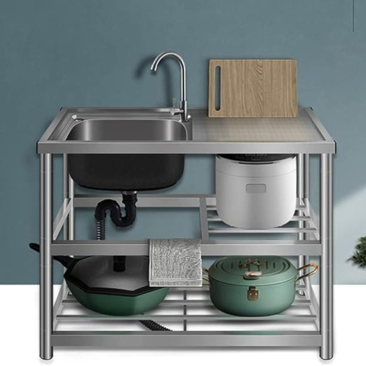 Мивката от неръждаема стомана с крака е практично и устойчиво решение за кухни, работилници, търговски обекти и други помещения, изискващи лесна поддръжка и дълготрайна употреба. С размери 75 x 40 x 80 см (Д x Ш x В), тя предлага достатъчно работно пространство, а самият кориторазмер (36 x 32 x 14 см) е удобен за различни дейности – миене, изплакване и подготовка на продукти.