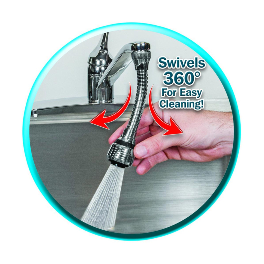 Лесно достъпен накрайник за чешма с гъвкава структура Turbo Flex 360. Знаем, че системите за чешма с гъвкава структура са доста скъпи и не всяко домакинство има възможност да си позволи да си ги вземе. Затова ние ви предлагаме един много по евтин вариант. Вместо да сменяте смесителя с нов му сложете гъвкавия удължител и ще усетите мигновено разликата. Много по удобно ще ви бъде когато изплаквате мивката или искате да измиете някой по голям съд, тъй като е направен от гъвкава структура, която ти позволява да използваш и въртиш удължителя на 360 градуса. Не се колебай, защото всеки заслужава удобство в своя дом без да утежнява това вашия бюджет.