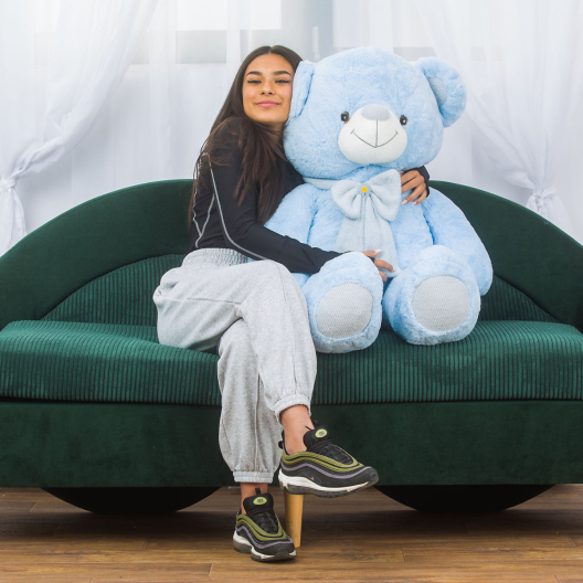 Супер мекото плюшено мече е много гушкащо и е направено от висококачествени, устойчиви на алергии материали за Вас и Вашето семейство. Нашето Синьо плюшено мече поставя най-високите стандарти за изкуствена кожа, пълнеж и естествени тъкани, за да гарантираме, че имаме най-меката и пухкава плюшена играчка.