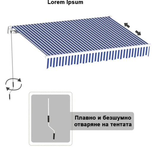 Прибираща се тента - 3 х 2 м, синьо-бяло райе