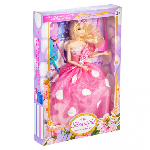 Принцеса руса кукла играчка за момичета. Комплектът идва с магическа розова рокля, сменяема модна чантичка и два магически жезъла. Подходяща за деца над 3 години. Голяма е 29см.