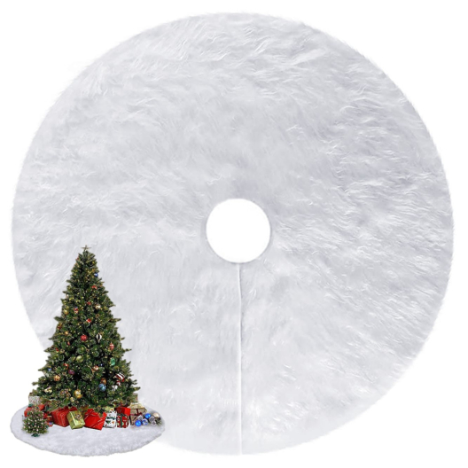Пухкав килим постелка за коледна елха, 90 см, бял