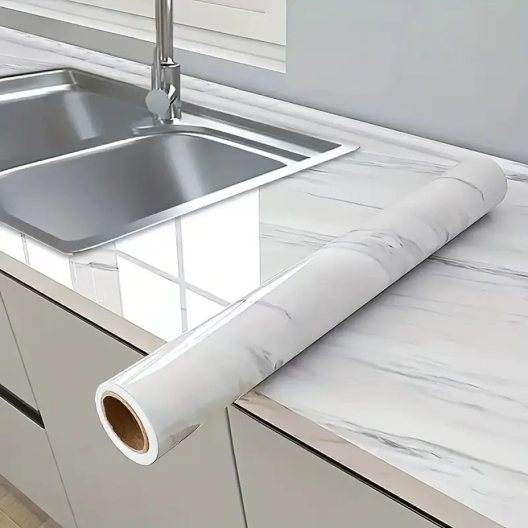 Фолиото за стена с мраморен ефект е направен от висококачествен екологичен и издръжлив винилов PVC материал.