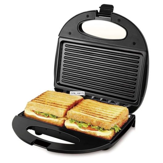 Сандвич тостер Rosberg R51442C, 750W, За 2 тоста Незалепващ, Инокс/черен