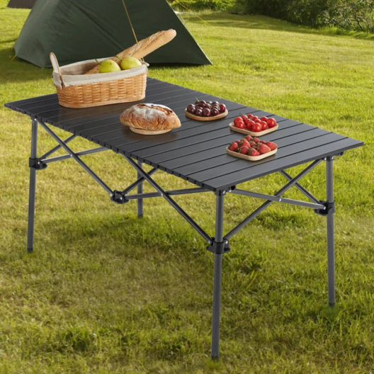 Тази сгъваема къмпинг маса с размер 93/50 см е идеална за семейни пикници, къмпинг с приятели или просто за комфортно хранене на открито.