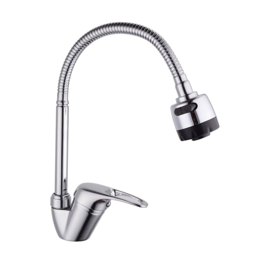 Смесител с гъвкав чучур Rosberg R57100AZ6, Аератор, Цинк, Хром покритие, Сребрист