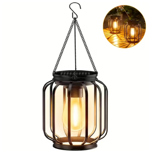 Соларен LED фенер, ретро стил, с верижки и кука