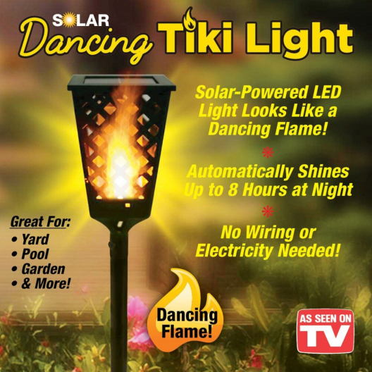 Соларната лампа Dancing Tiki Light имитира горящ пламък и така създава неповторима атмосфера в градината ви. Този красив ефект може да продължи до 8 часа през нощта!