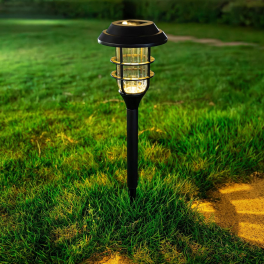 LED соларната лампа е идеална за поставяне във вашия двор. През деня слънчевият панел в горната ѝ част трансформира слънчевата светлина в електричество и презарежда батерията. През нощта светлината може да се включва автоматично с помощта на електричество. Фенерът автоматично ще изключи осветлението и ще влезе в режим на зареждане при дневна светлина. Вградена в земята или монтирана на неподвижна опора, тази LED лампа има система за автоматично включване/изключване и освен красивия си външен вид, е изработена така, че да издържа на външни условия.