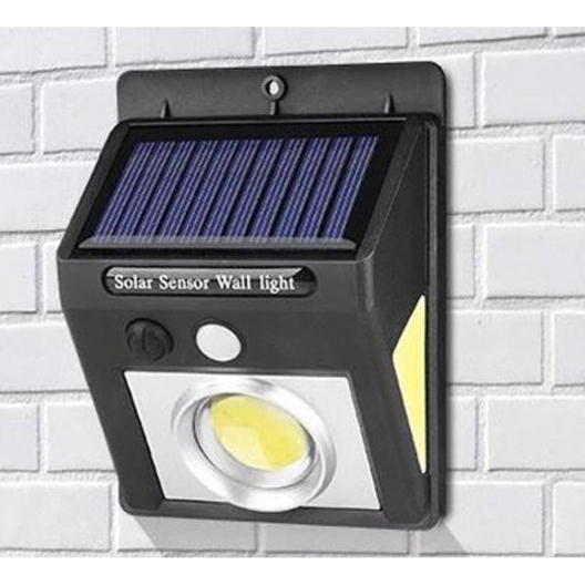 COB LED лампа за стена с датчик за движение и соларен панел. Това е новия модел с COB LED и лупа и два режима на действие. През деня се зарежда от слънцето и вечер в тъмнина, когато засече движение се включва. Уреда трябва да засече движение от около 15 секунди в детектирания район, да бъде тъмно за да се включи.