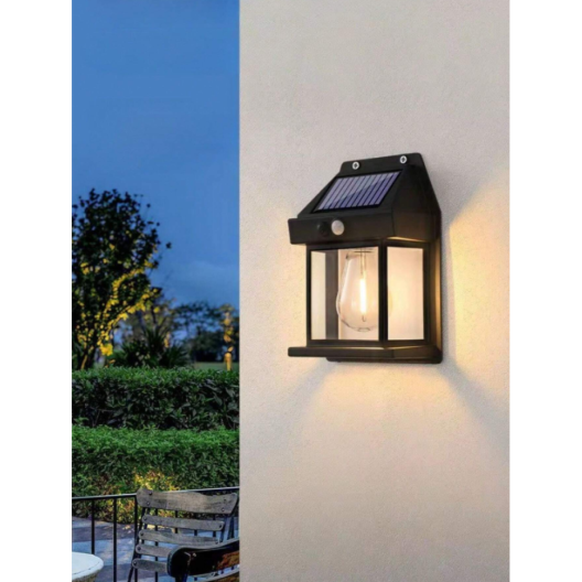 Тази соларна волфрамова стенна лампа е идеалното решение за осветление на градини, дворове, входни зони и алеи, съчетавайки класическата топлина на волфрамовата жичка с енергоспестяващата мощ на соларната технология. С вграден сензор за движение, лампата се включва автоматично при засичане на движение, което я прави не само удобна, но и ефективна за осигуряване на безопасност през нощта. Благодарение на соларното захранване, тя се зарежда през деня и осветява пространството вечер, без нужда от електрическо свързване. Изработена от висококачествени материали, тя е устойчива на атмосферни влияния и подходяща за външна употреба. Меката ѝ и приятна светлина създава уютна атмосфера, което я прави перфектен избор за градини, балкони, тераси и пътеки. Със стилен и модерен дизайн, тази лампа комбинира естетика и функционалност, предлагайки практично и екологично осветително решение за всеки дом.