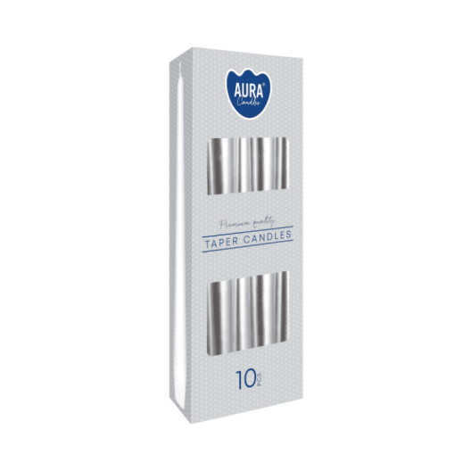 Свещи конус 10 бр., ø2.3x24.5 см - сребърен