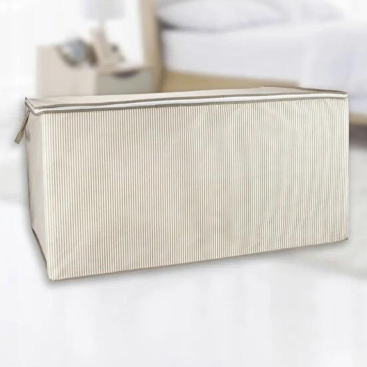 Този текстилен органайзер с цип е идеалното решение за подреждане и съхранение на вашите одеяла, завивки и други текстилни изделия в дома ви. Със своите размери, той предлага широк вътрешен обем, в който можете да съхранявате обемни предмети.