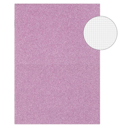Тетрадка с меки корици, A5, малки квадратчета, 40 листа - лилав брокат