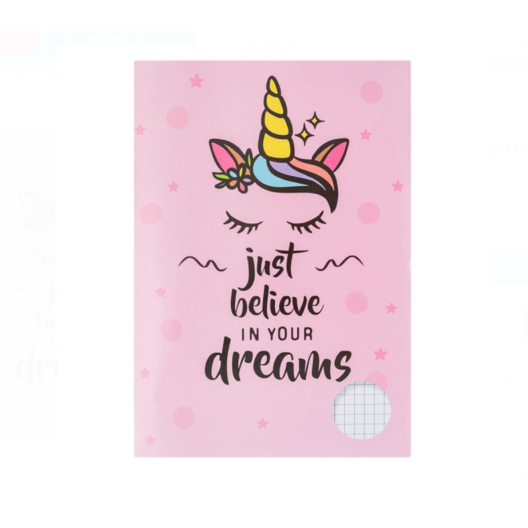 Тетрадка с меки корици, А5, малки квадратчета, 40 листа - розова с еднорог