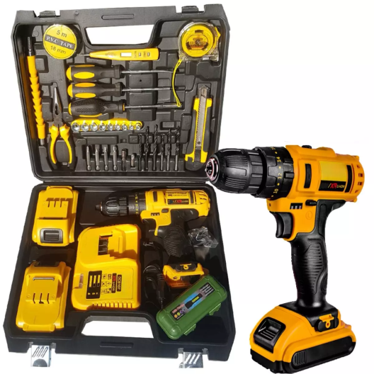 Винтовертът разполага с 2 допълнителни батерии, включени в комплекта, както и с удобен куфар за съхранение и транспорт.
