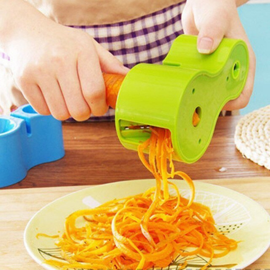Специален нож резачка, комбинация от модерен дизайн и функционалност. Удобен и практичен уред за всяка кухня. С този уред за декориране ще впечатлите всички гости. С негова помощ можете да създадете лентички, спирали или пък жулиени за едно не само изключително вкусно, но и добре изглеждащо ястие. Оформянето на репички, моркови, краставици, картофи или други твърди храни в декоративни къдрици вече става безпроблемно и лесно.