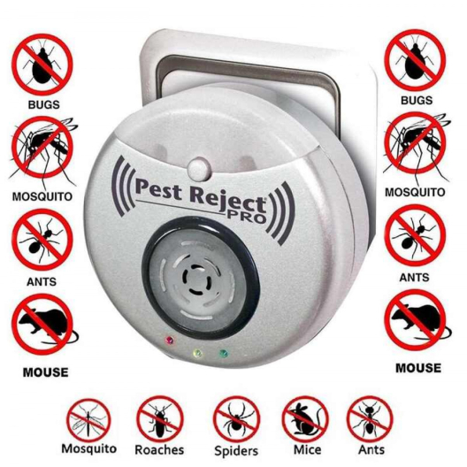 Електрическо устройство против вредители Pest Reject Pro е вашето спасение от вредителите. Благодарение на него ще се справите с нашествието от мишки, плъхове, комари, дървеници, мухи, бълхи и дори хлебарки. Мощното действие на устройството се простира на 300 м2, което е напълно достатъчно за всеки дом. Освен за домашна употреба обаче, може да се ползва и в складове, мазета, тавани и на други места, на които има движение на вредители.